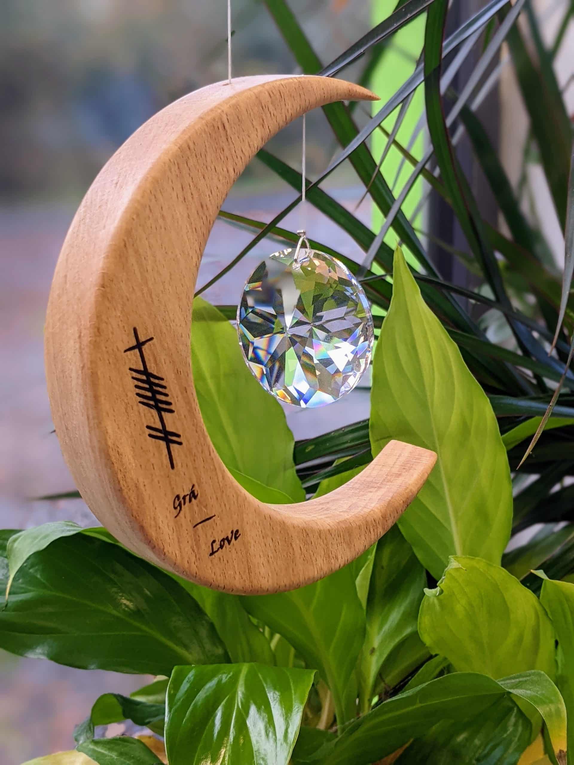 Our Ogham Inspired Suncatchers come in Irish Beech wood.