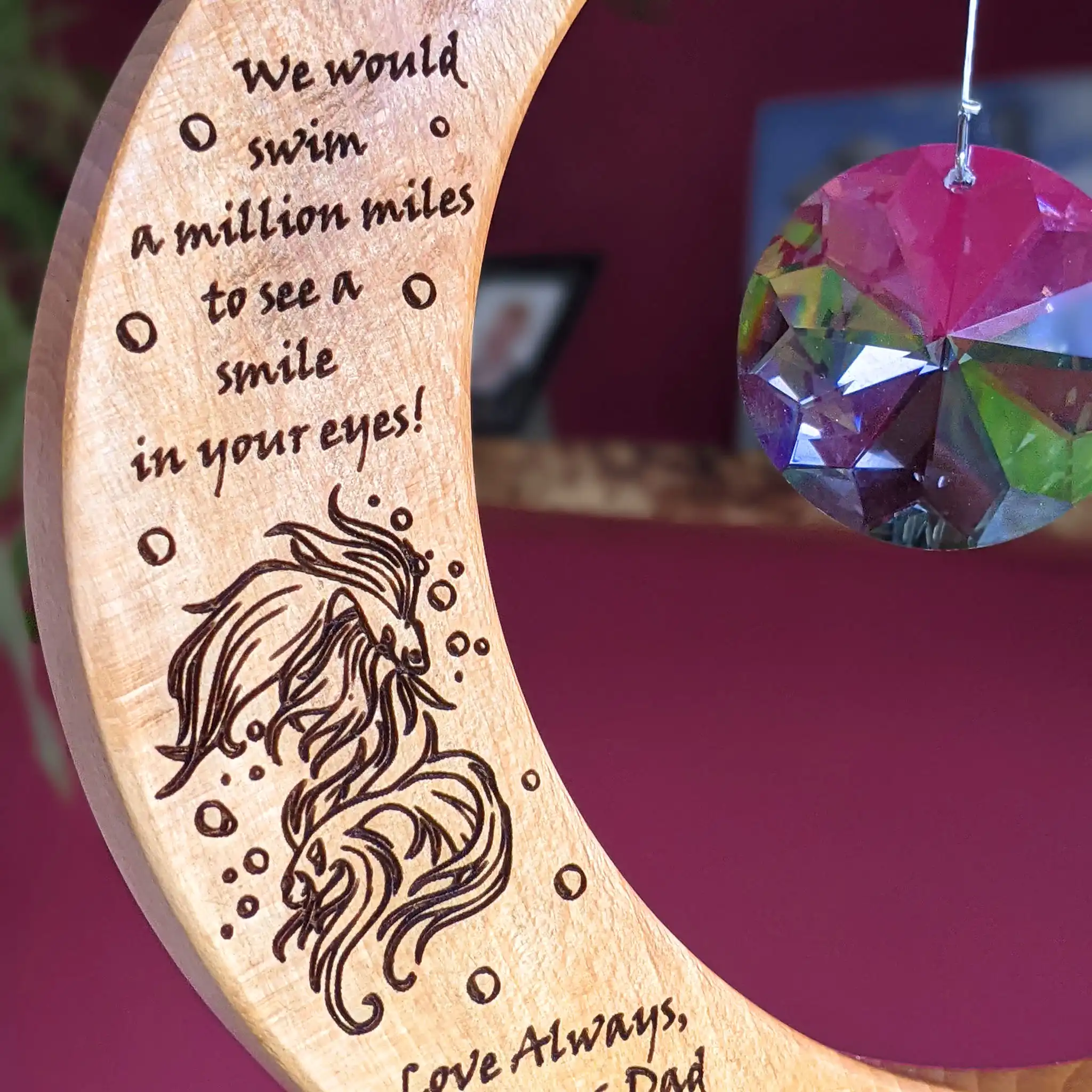 Wonderful piece of craft to give, a beautiful and personal gift. I have given the personally engraved moon suncatchers three times as gifts and all thought they were wonderful. Also delivered really quickly……..congratulations to fabulous Artwood.