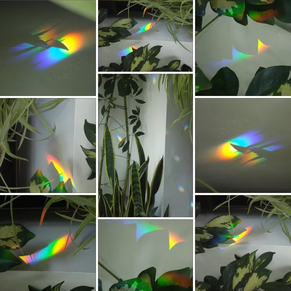 When hung in a window, sunlight passes through the crystal. The crystal acts like a prism and creates soft rainbow reflections around the room.